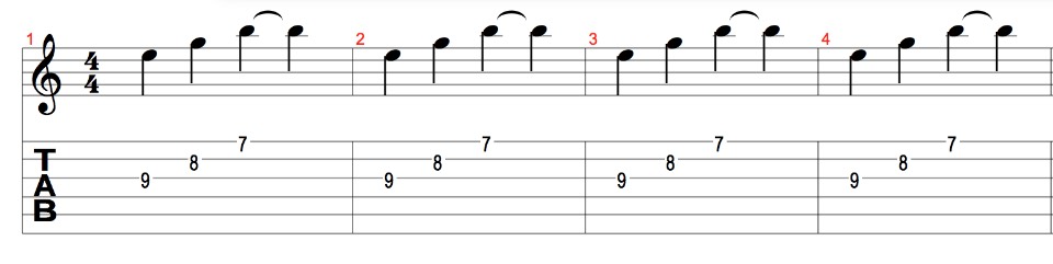 Anda bisa mempraktikkan latihan ini sebaliknya - dari tinggi ke rendah. Ini akan membantu Anda menguasai prinsip dasar teknik - gerakan halus dan konstan dari pick hand dan terpisah, namun tanpa jeda memetik dari neck gitar.